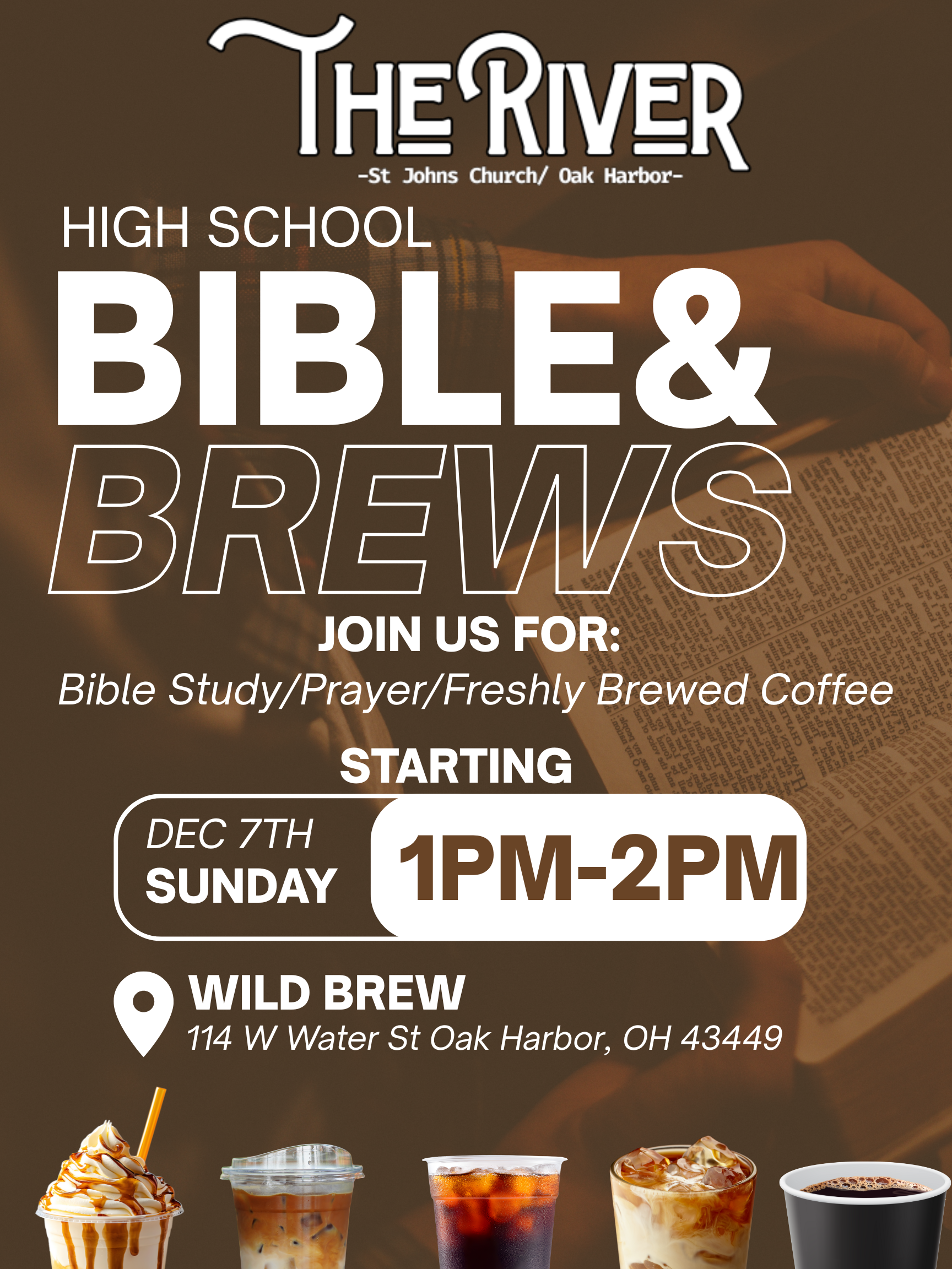 Back to All Events High School Bible & Brews Sunday, December 14, 2025 1:00 PM 2:00 PM Wild Brew 114 West Water Street Oak Harbor, OH, 43449 United States (map) Google Calendar ICS HS Bible & Brews is every Sunday at 1 pm! Join Tyler and Paul for conversation, coffee and fellowship...@Wild Brew in downtown Oak Harbor. All high school students are welcome…come as you are!